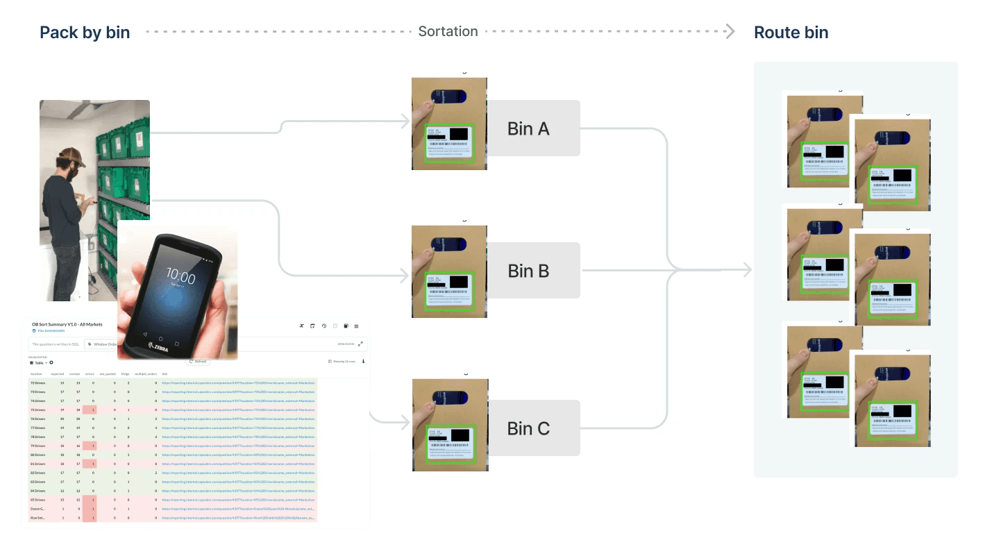 Built with components from the Ops Design System, the UI feels consistent with other internal tools and updates bin counts and progress instantly with each scan. By consolidating all tasks into one device and eliminating reliance on the desktop dashboard, the solution streamlines movement, boosts confidence, and transforms a fragmented process into an intuitive, reliable workflow.